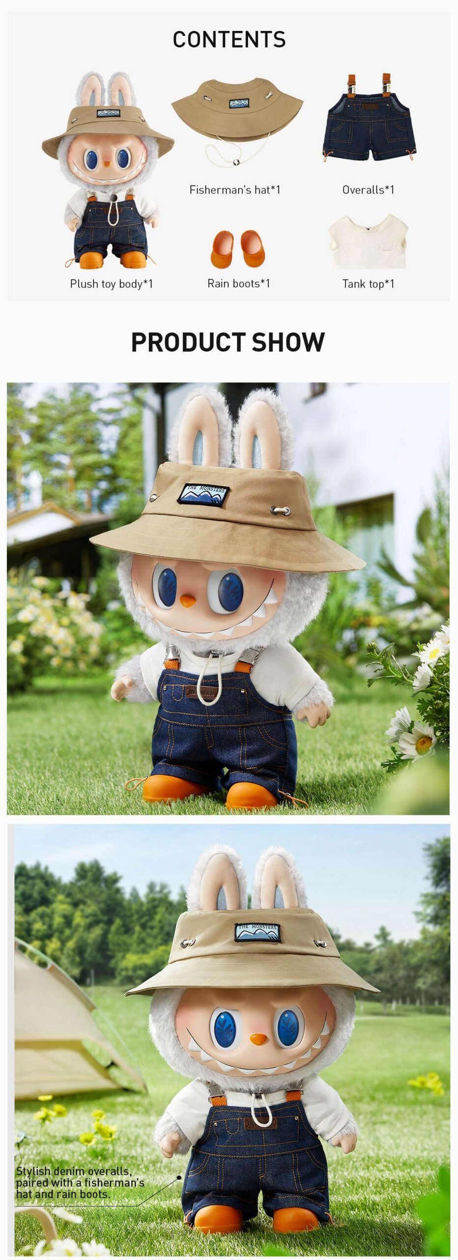 Designer: POP MART Release Date: April 12, 2024 Material: FABRIC-42%COTTON/18%PVC/15%ABS/13%POLYESTER FIBER/12%TPR FILLING-90%POLYESTER FIBER/10%PE PELLEETS Size: 7.87*5.9*15.74inches Not suitable for persons under 15.![]()